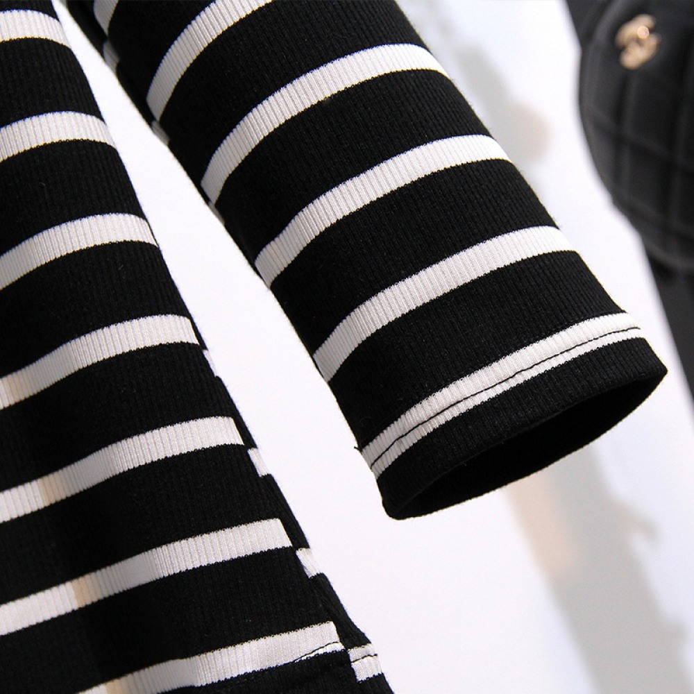 Autumn and Winter Fat Mm Extra Plus Size Women's Pit Strip Long-Sleeved T-Shirt Thin Striped Bottoming Shirt