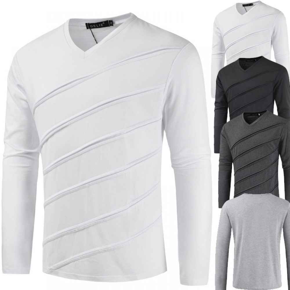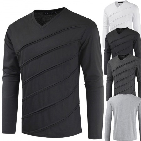Men's Short-Sleeved T-Shirt Mens Contrast Striped Slim-Fit Casual T-Shirt