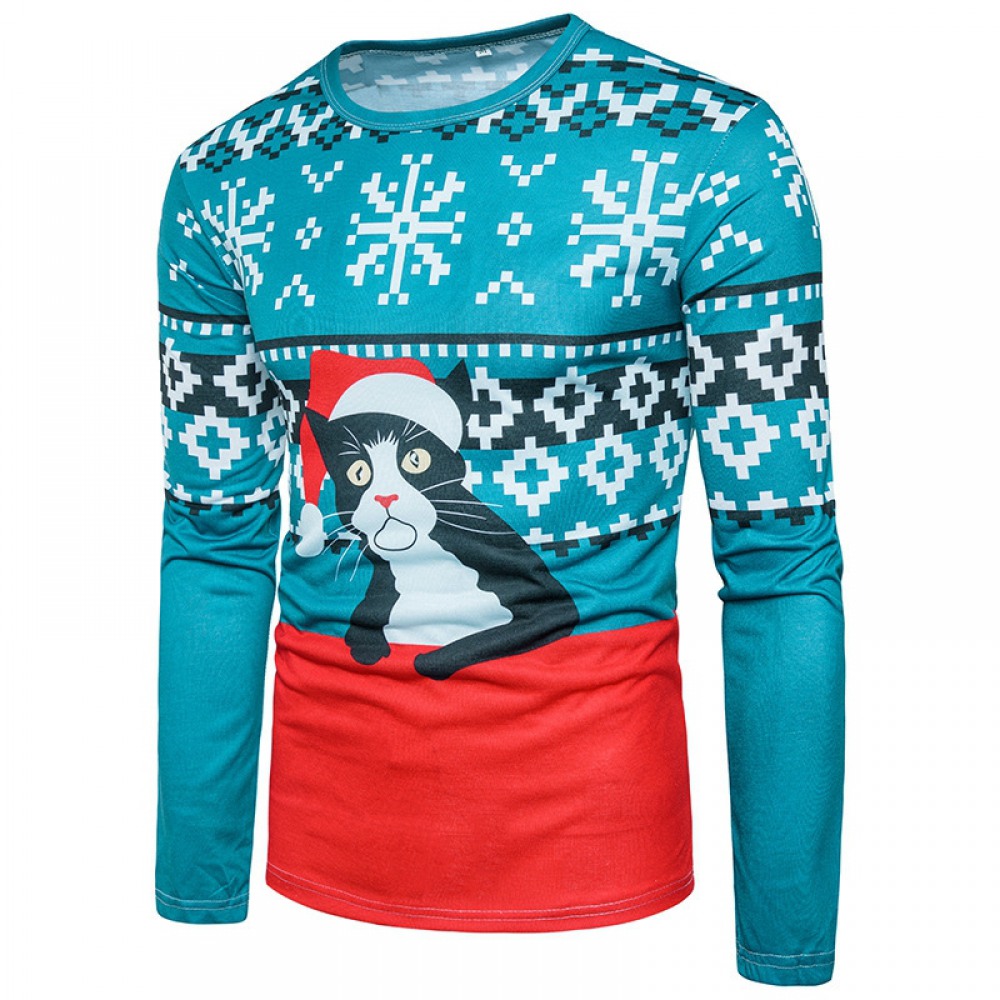 New Fashion 3D Characteristic Cartoon Cat Print Round Neck Long Sleeve T-Shirt