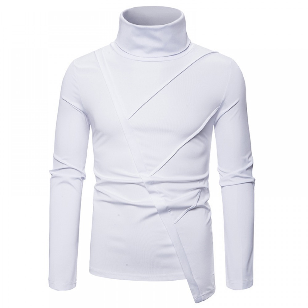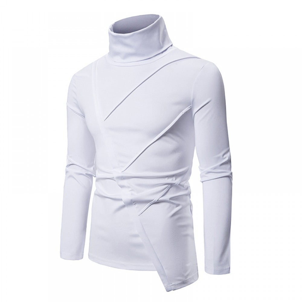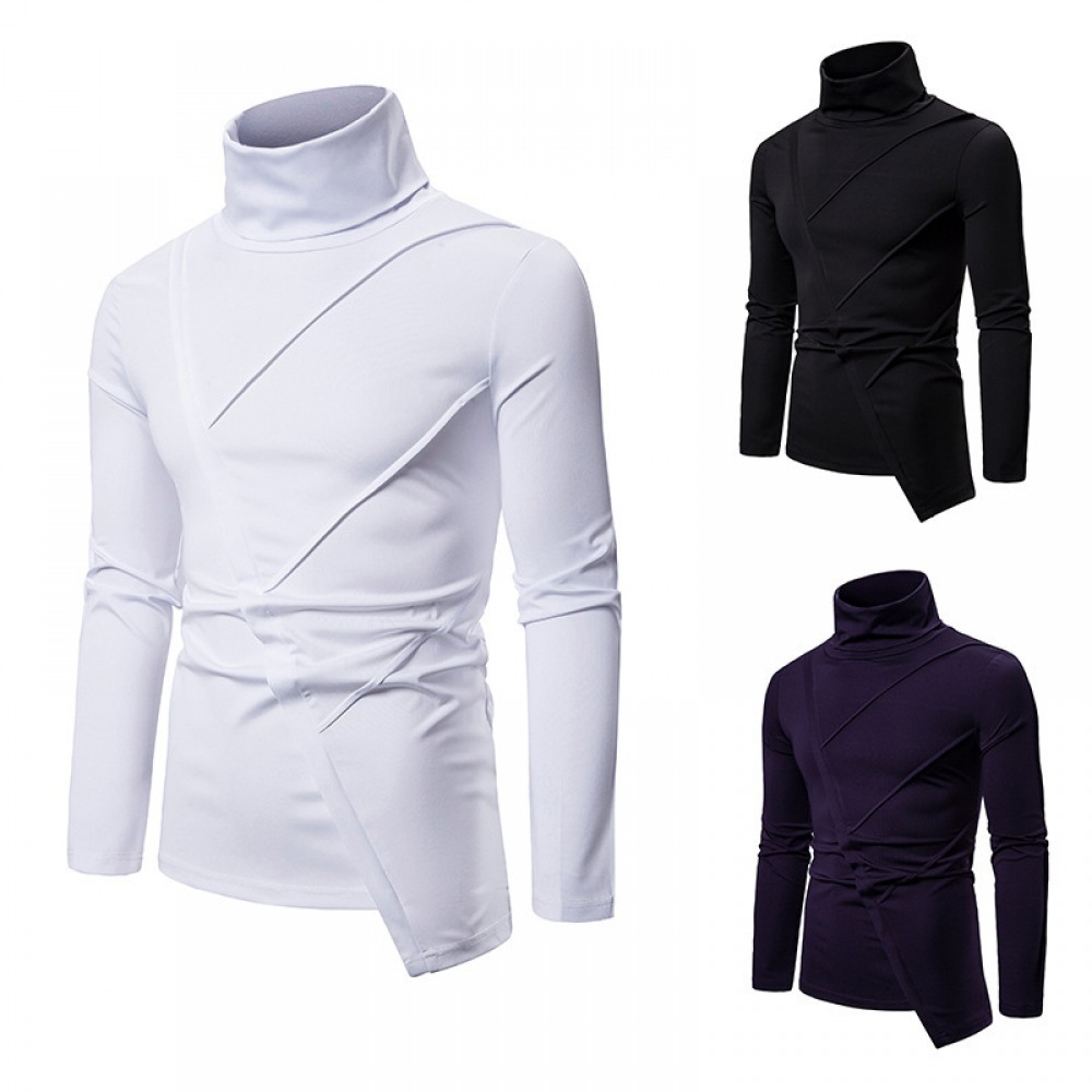 New Men's Dark Slim High Collar Irregular Mens Long Sleeve T-Shirt